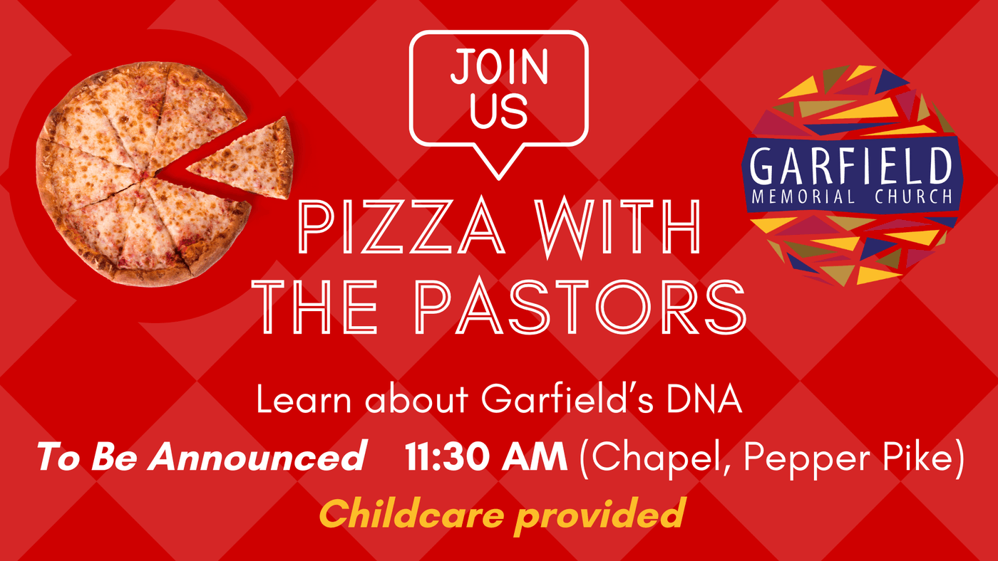 Meet our team, learn more about Garfield's DNA and how to get connected. Join us for pizza at 11:30 AM and discussion on on selected Sundays in the Chapel.