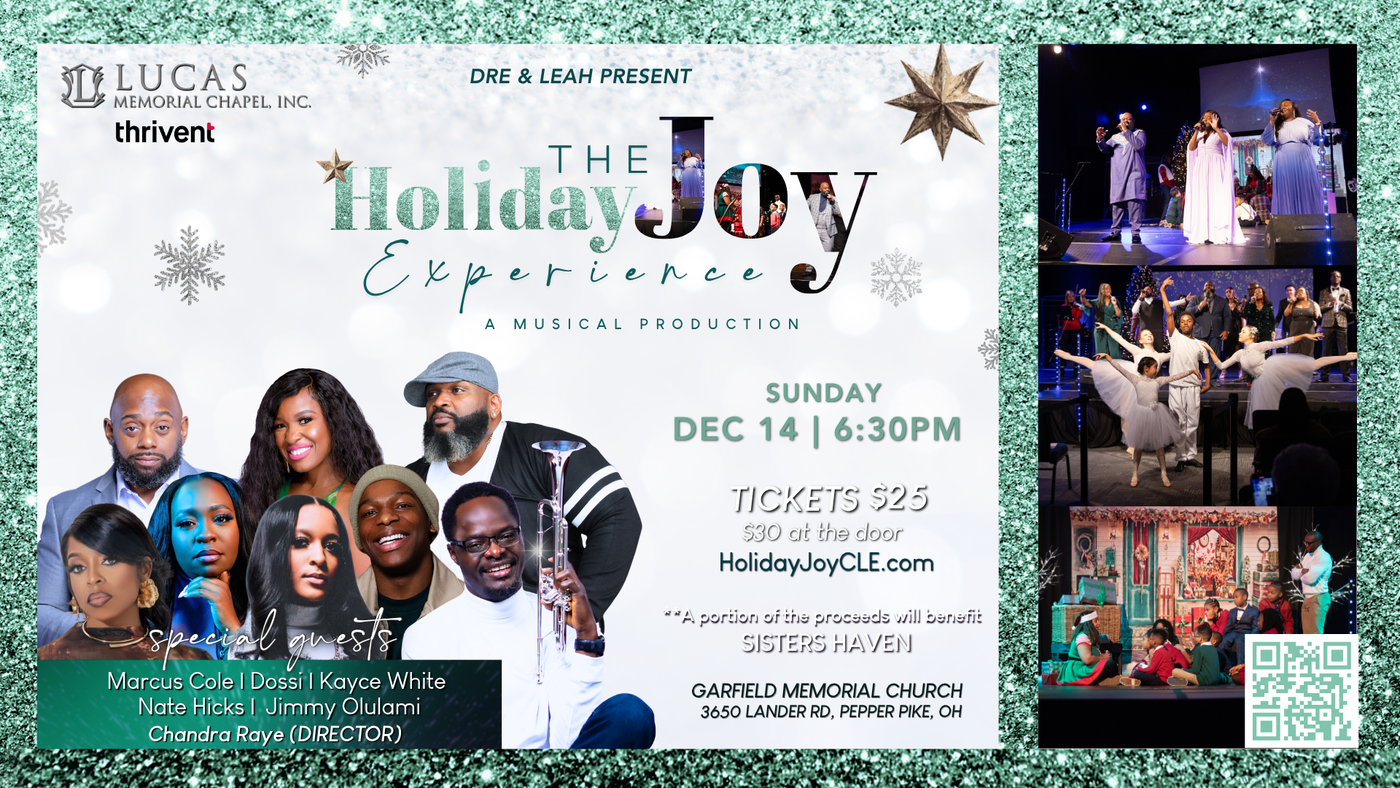 The HOLIDAY JOY Experience is back! – Sunday, Dec 14th at 6:30 pm. Dre & Leah are presenting a ONE NIGHT ONLY musical production featuring Marcus Cole and other amazing artists from the Cleveland area. Tickets are now on sale at HolidayJoyCLE.com. This will be a Christmas to remember!